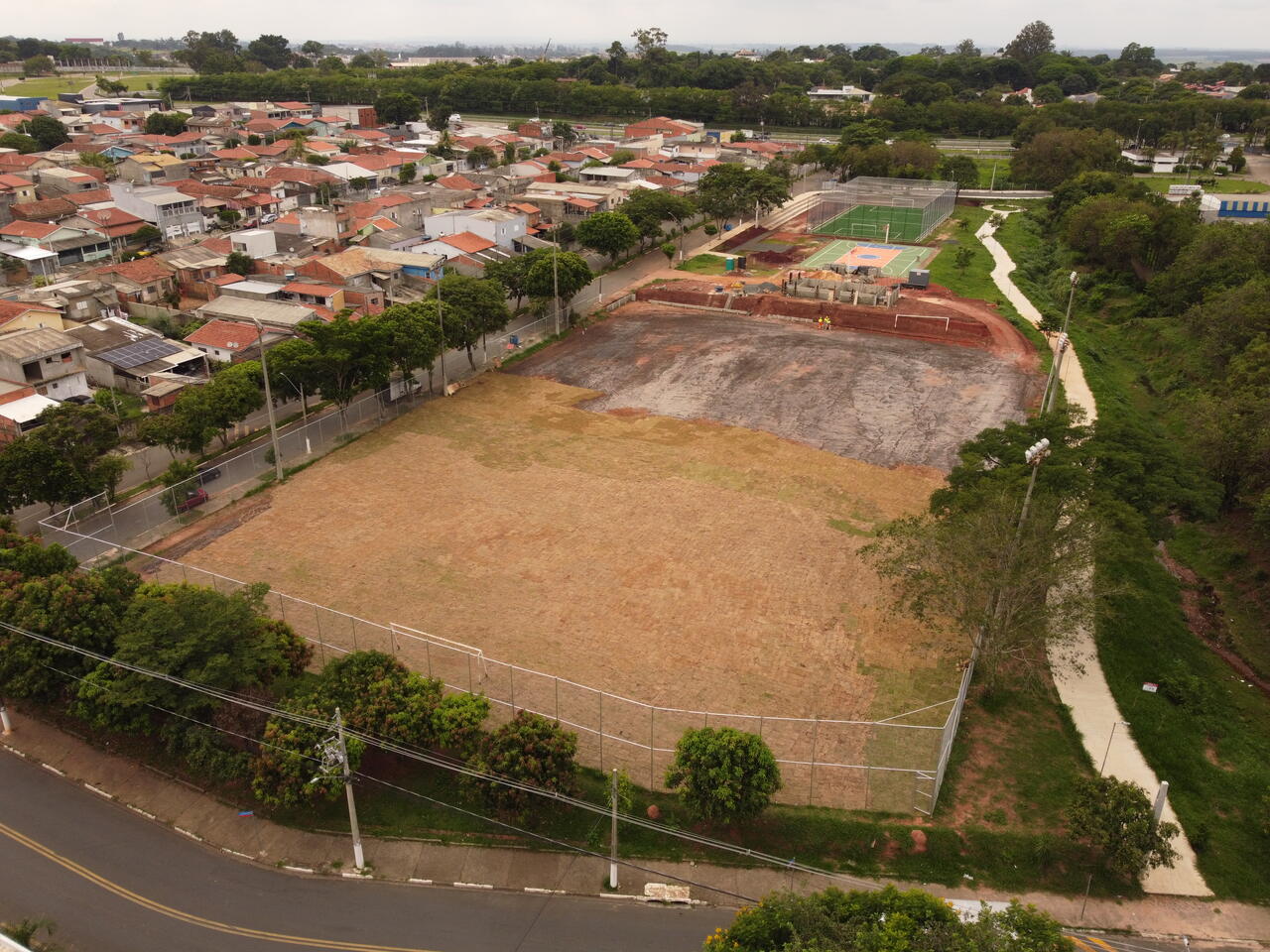 Além do Campo da Mina, o novo campo de futebol society, com grama artificial e mais de 1.000 m2 de área, está na fase final de construção. O espaço também conta com alambrados, rede de proteção, traves e refletores. As arquibancadas, para em torno de 200 pessoas, também estão prontas. Já nesta sexta-feira (19/12), a Prefeitura inaugura mais um campo de futebol society no bairro e entrega uma quadra poliesportiva revitalizada, além de academia ao ar livre e playground anexos. As intervenções são parte da primeira etapa de inauguração do novo Parque Socioambiental do Jardim Amanda, integrando todo este complexo esportivo.