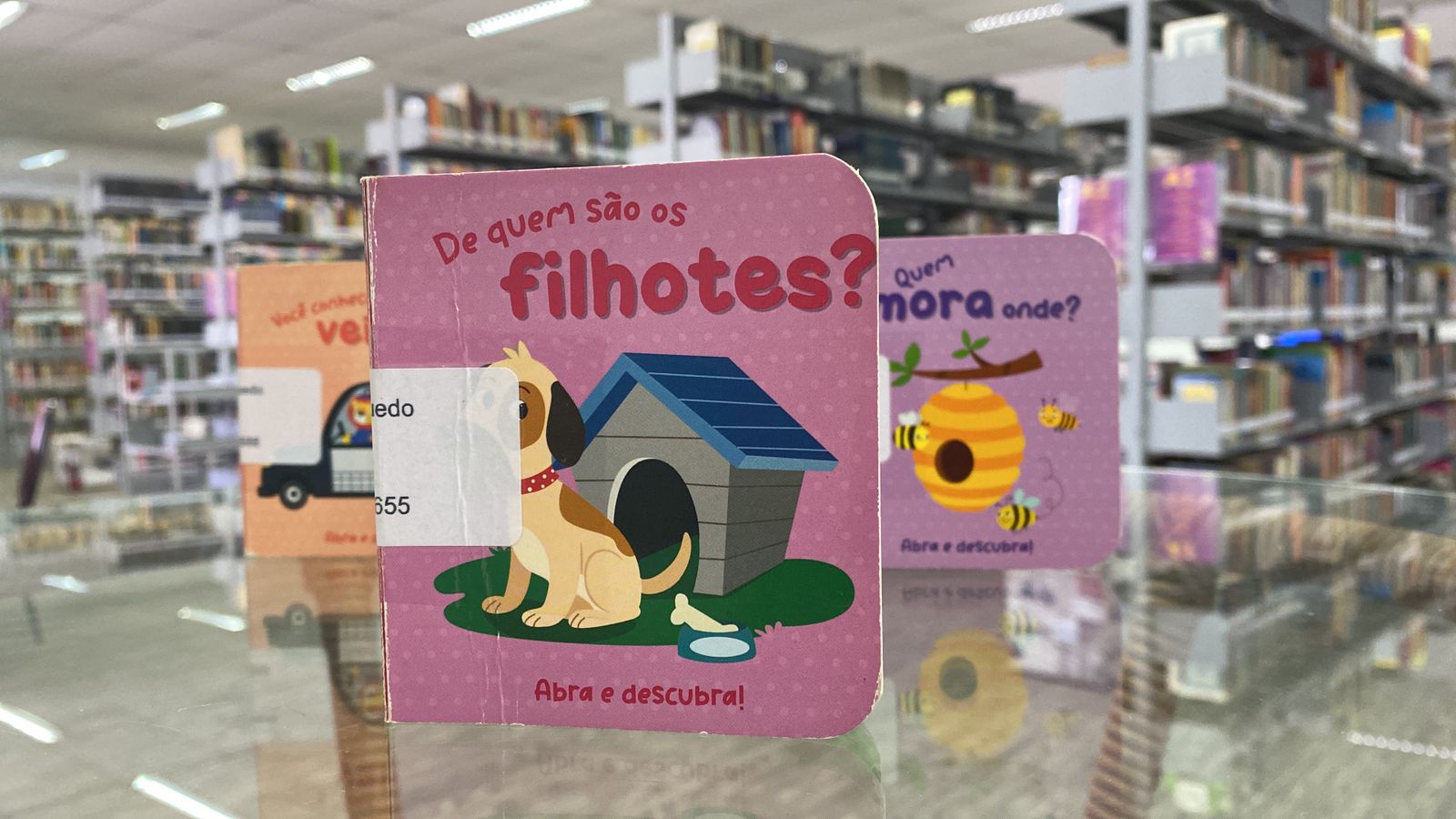 O livro traz perguntas cujas respostas estão atrás de pequenas abas que as crianças têm que levantar para saber. O título integra o lote de mais de 100 obras literárias adquiridas pela biblioteca este ano.