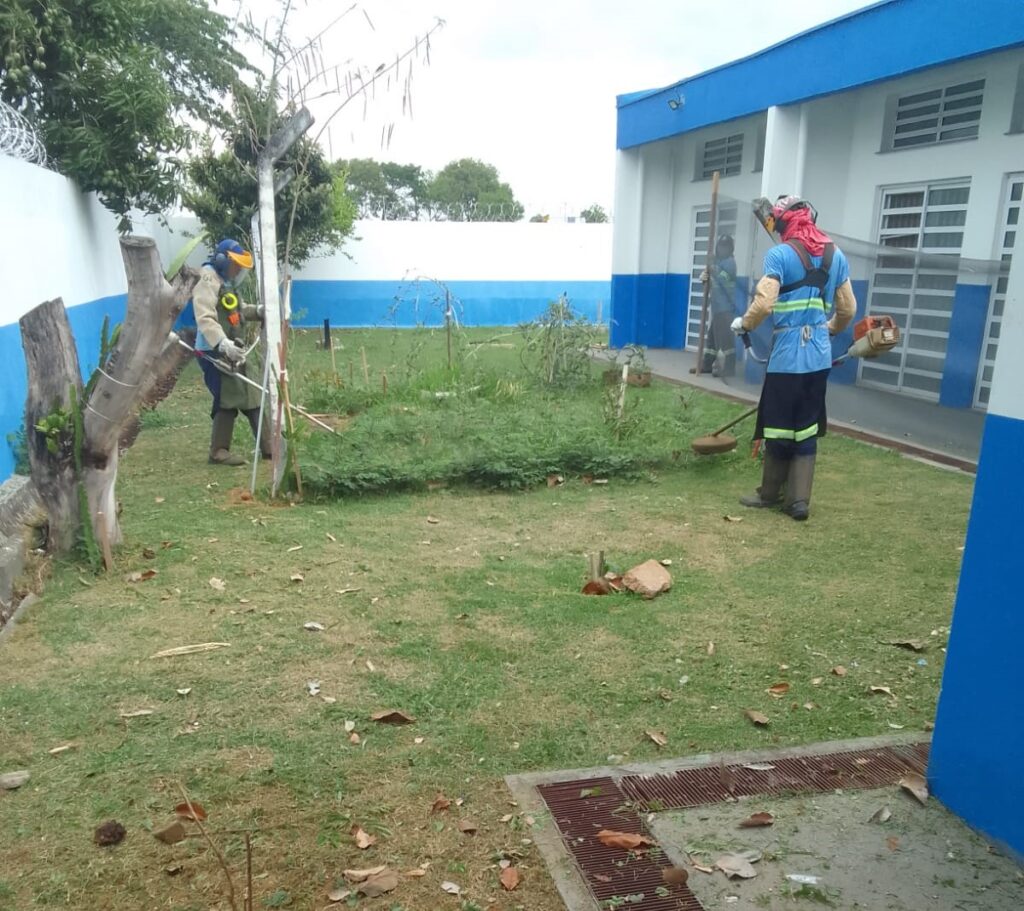 Unidades de saúde em Hortolândia recebem reforço na limpeza e na poda do mato realizadas pela Prefeitura